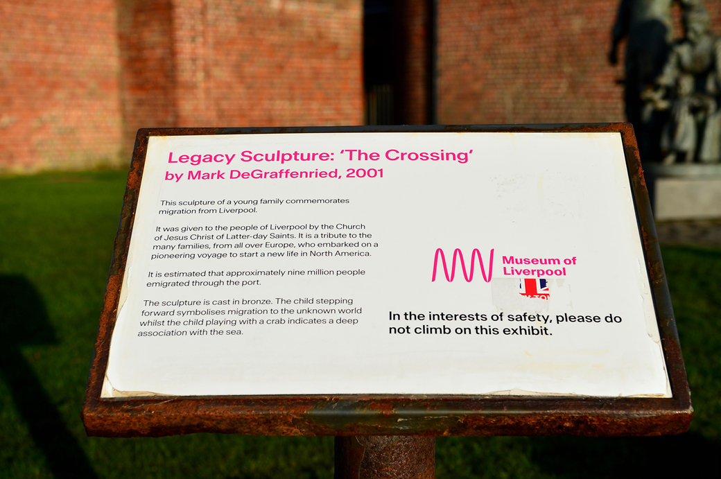 이 기념비는 예수 그리스도 후기 성도 교회가 리버풀 주민들에게 기증한 것으로, 북미에서 새로운 삶을 시작하기