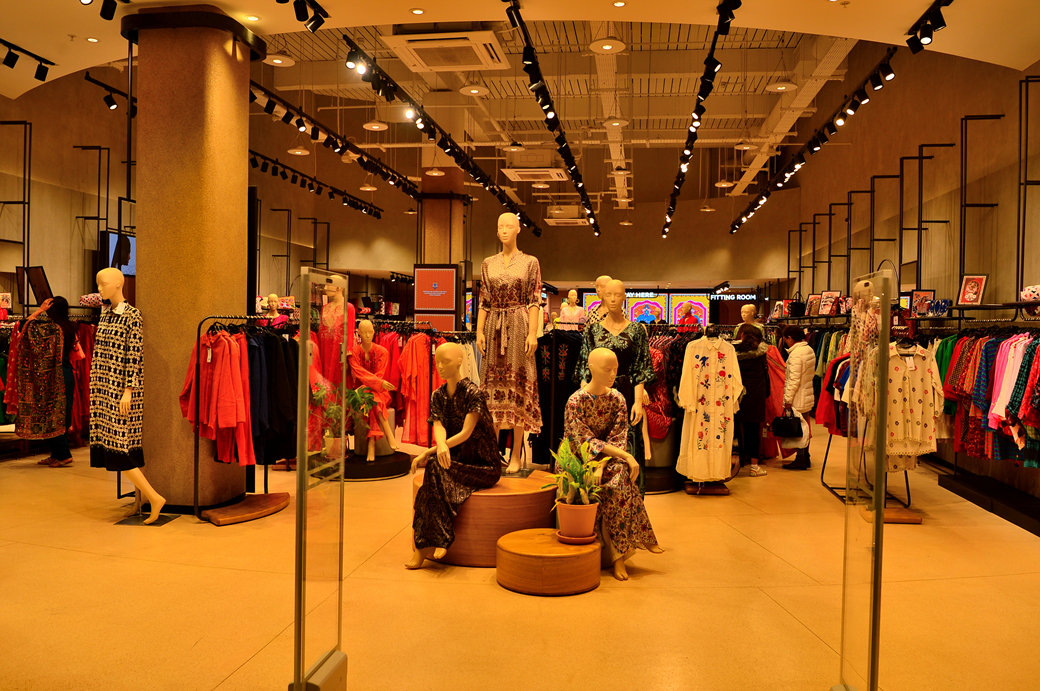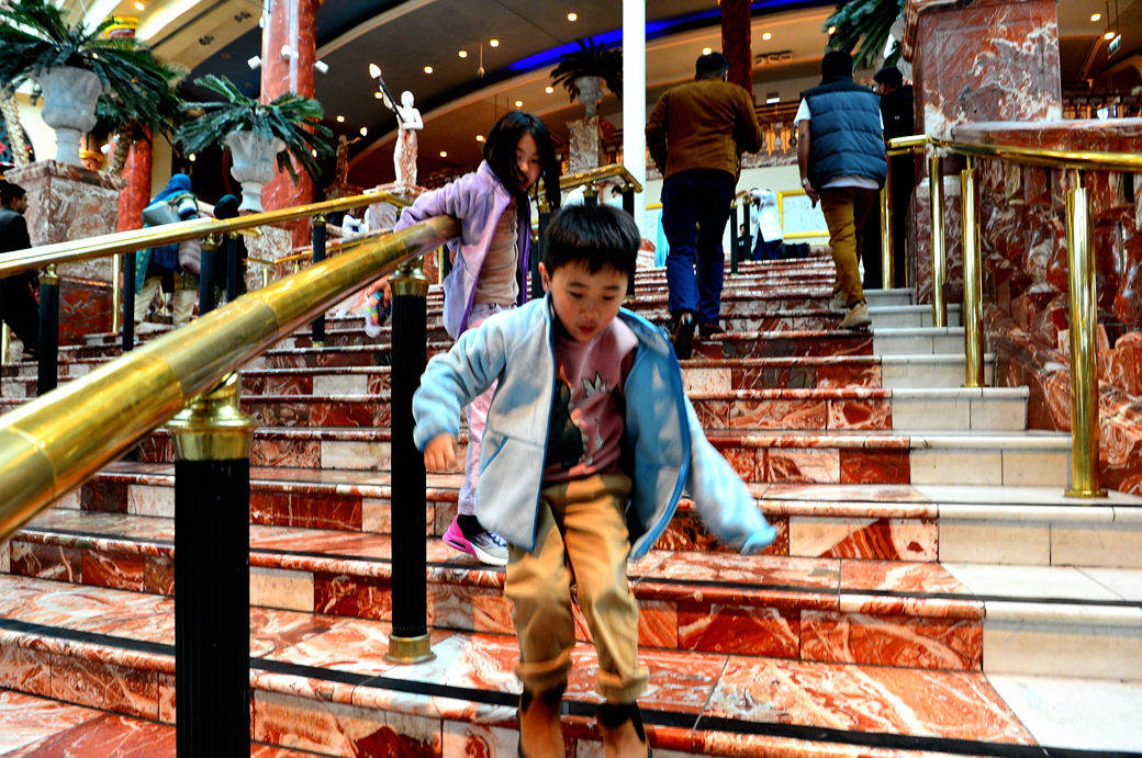 쇼핑몰 푸드 코트 상하를 잇는 멋진 계단이다.