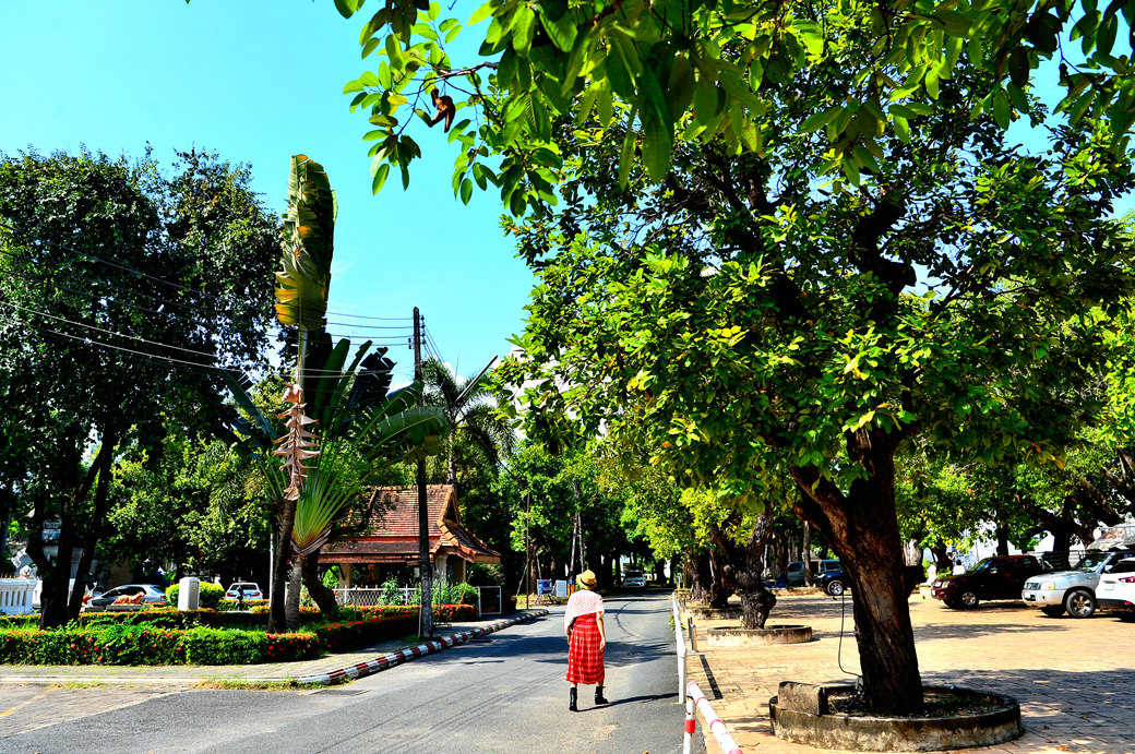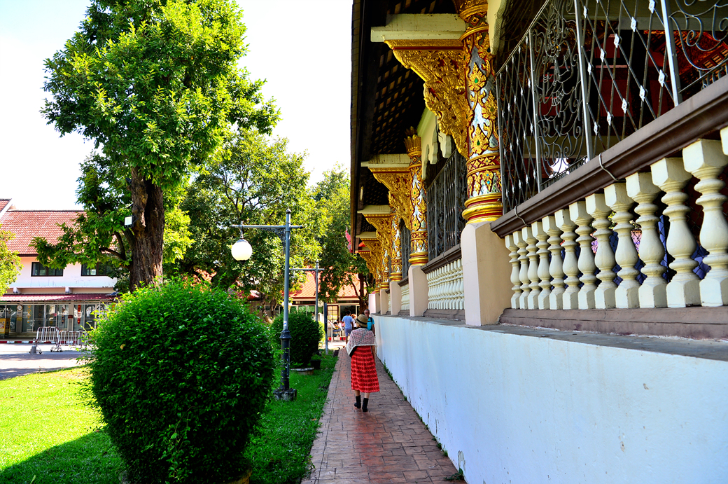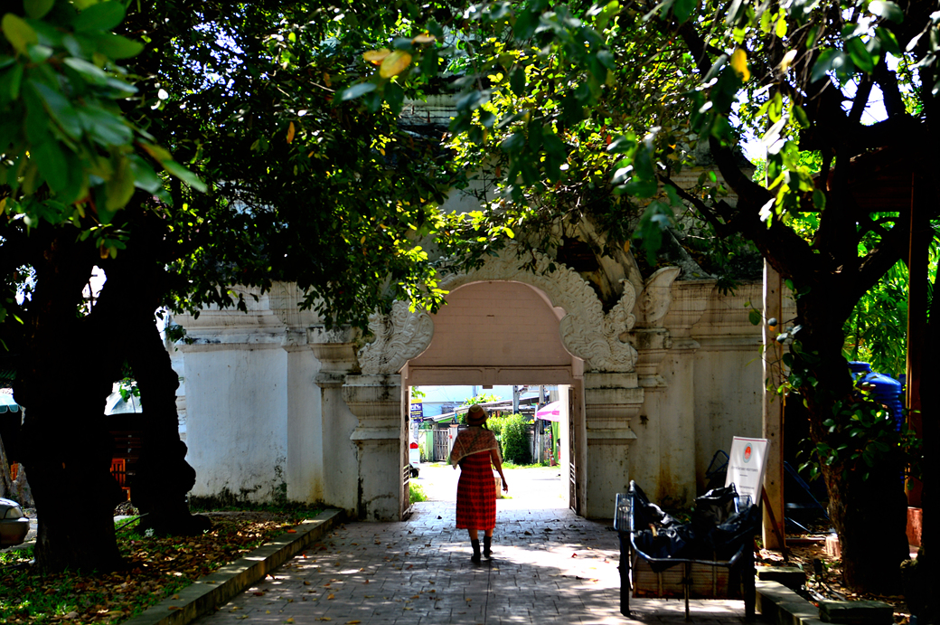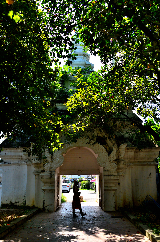왓 수안독 사원의 후면부 출입구를 나서는 모습이다.
