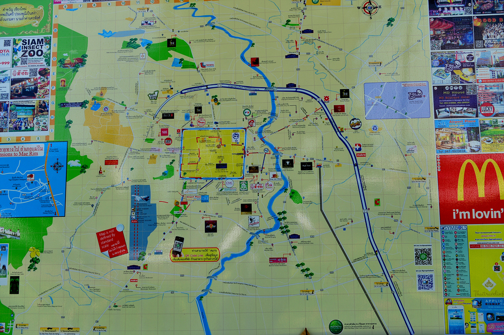 치앙마이 올드 시티 남쪽에 있는 왓 수안독의 위치를 표시해 놓은 지도다.
