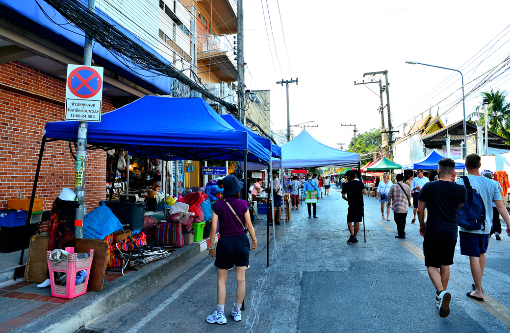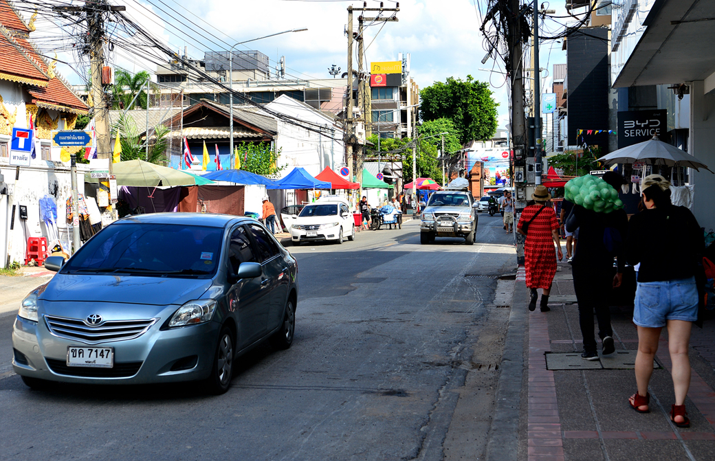 타패 게이트에서부터 왓 프라싱까지 이어지는 약 1km의 랏차담는 로드는 일요일 오후 4시부터 차량이 통제되며