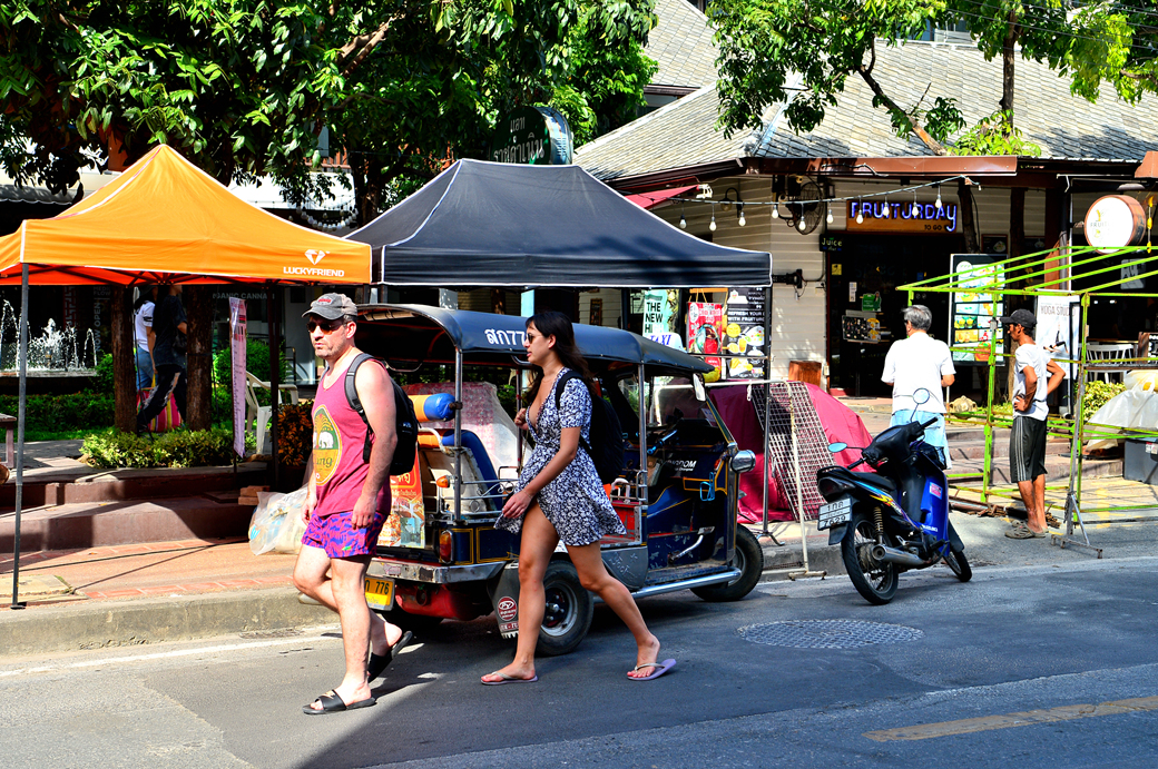 치앙마이 관광 안내소도 보이고, 거리를 활보하는 관광객들 모습도 보인다.