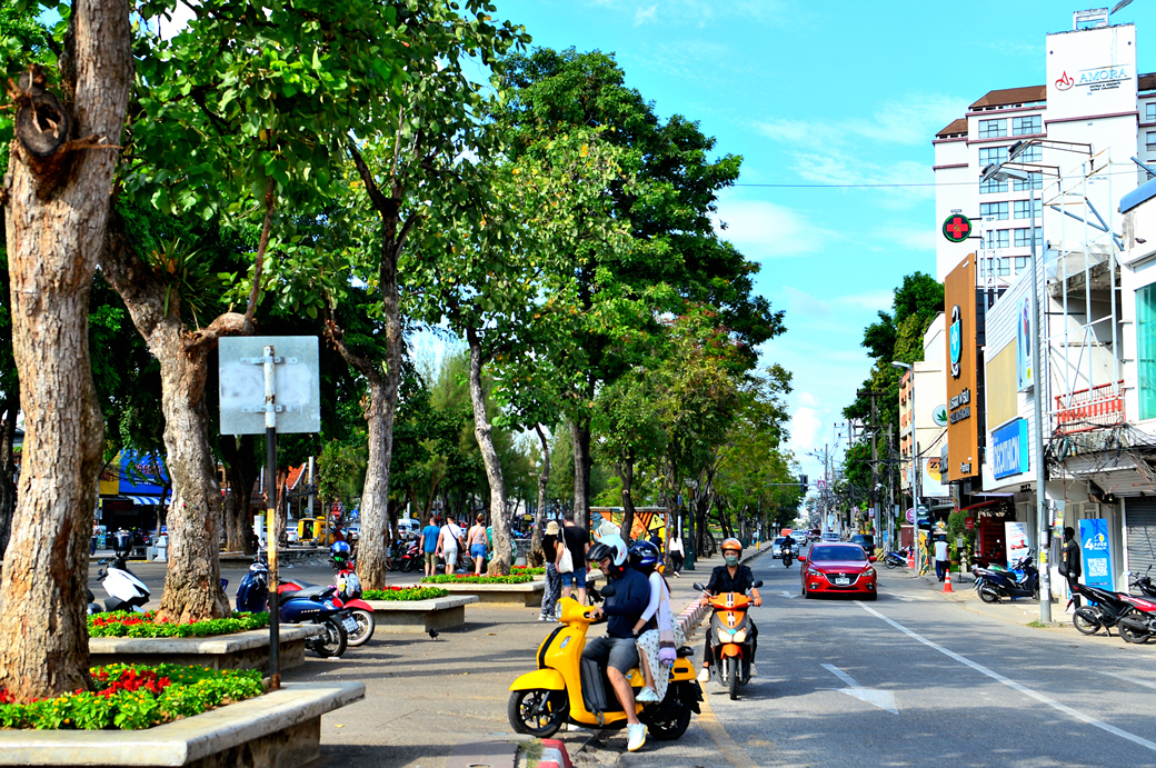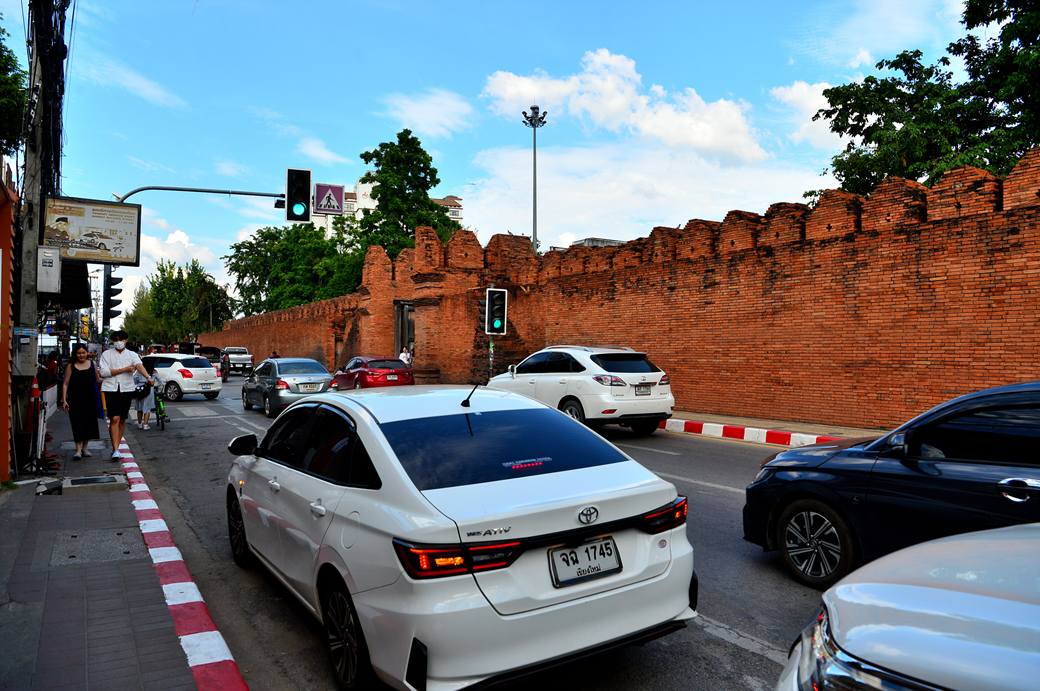 이전에는 타패 게이트 밖의 올드시티에 숙소가 있었는데, 호텔을 옮긴 지금은 이 도로의 반대편으로 가야 하고