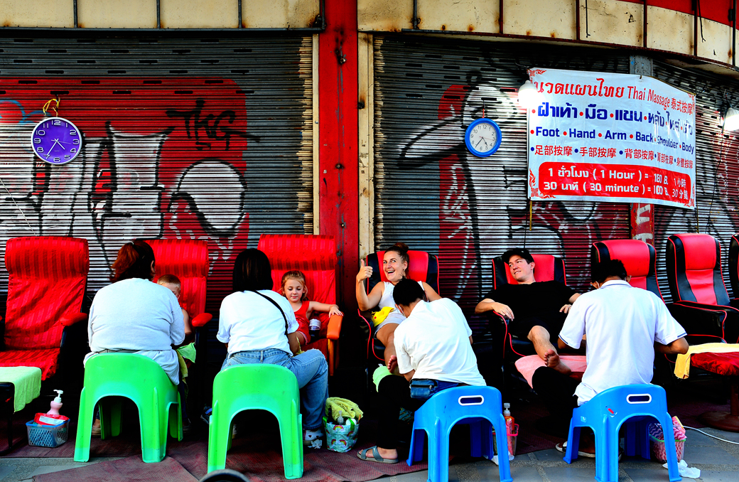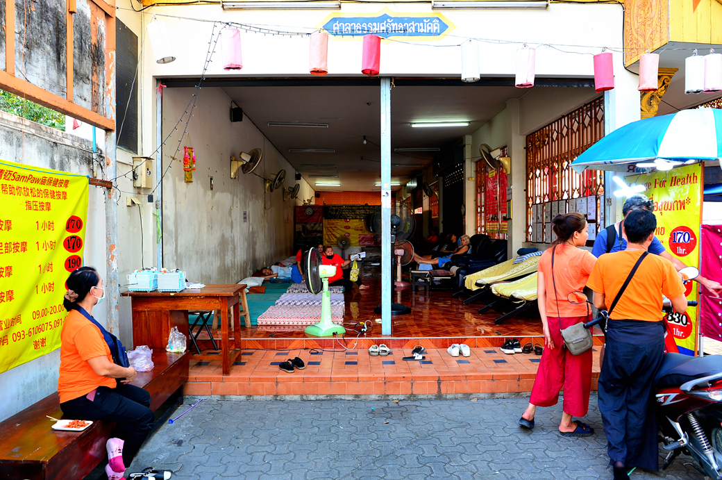 커다란 마사지 샵도 도로의 일부를 점령하고 있다.