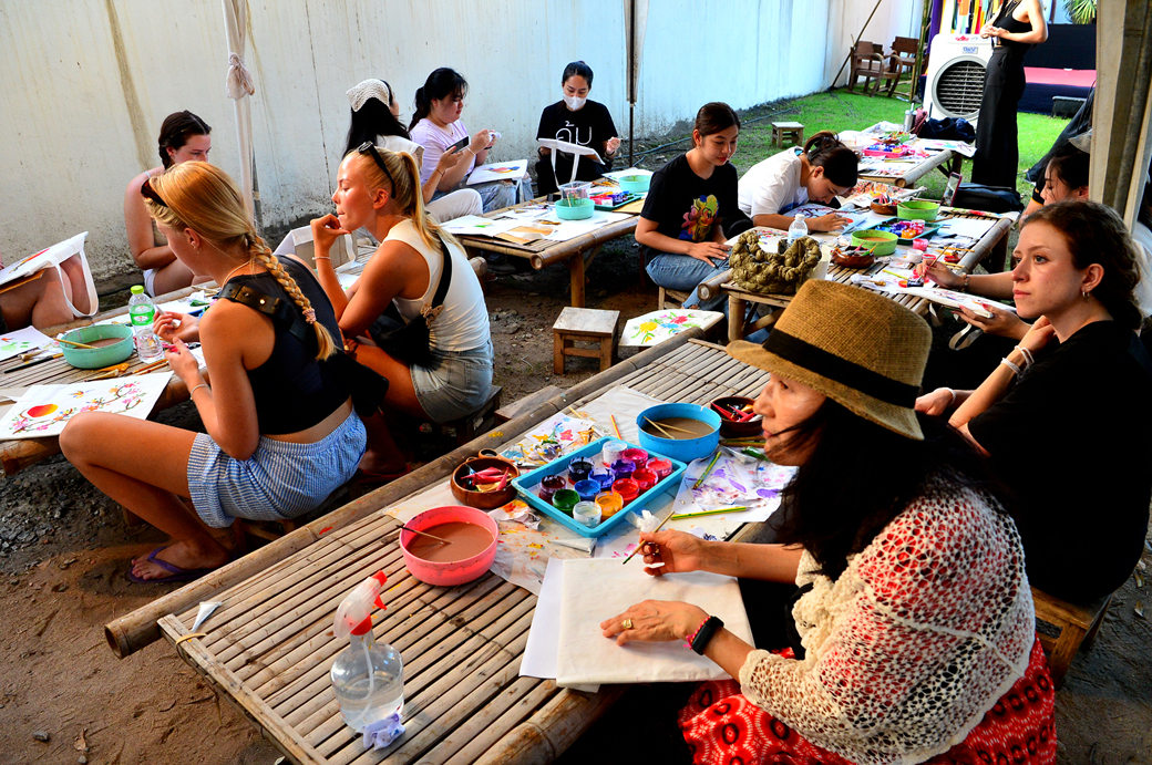 그림 그리는 곳 안쪽에는 지난번 방문 때도 보았던 대나무 천막과 테이블들이 자리하고 있다.