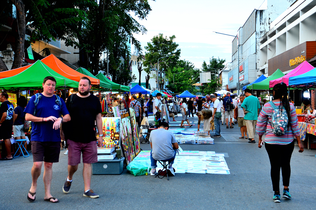 치앙마이 올드시티의 선데이 마켓이 열리고 있는 랏차담는 로드 풍경이다.