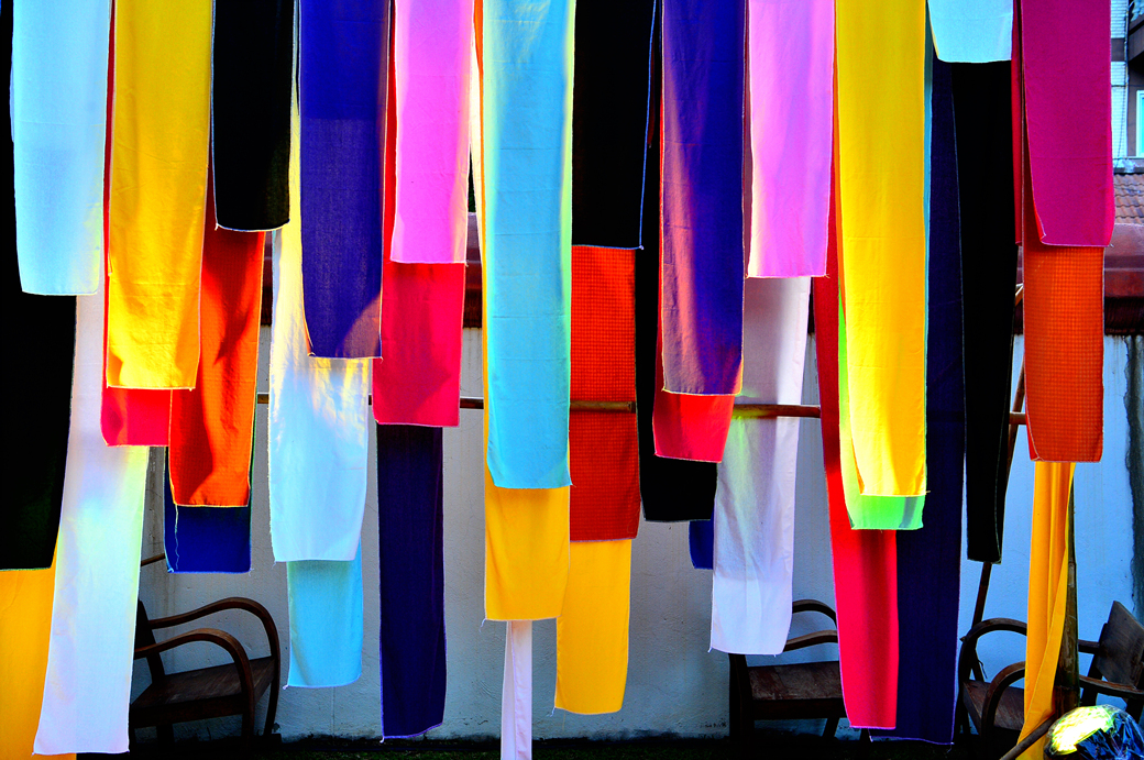 입구에 매달아 놓은 아름다운 오색 천들 사이를 지나서 다시 거리로 나선다.