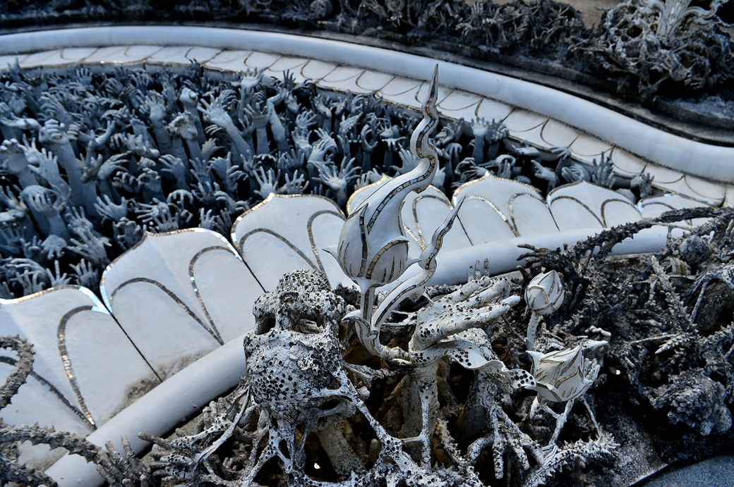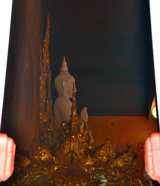 왓롱쿤은 불교의 3계인 지옥계, 현생계, 극락계로 나뉘는데, 사원 밖 현생계를 지나 지옥계를 지나게 된다.