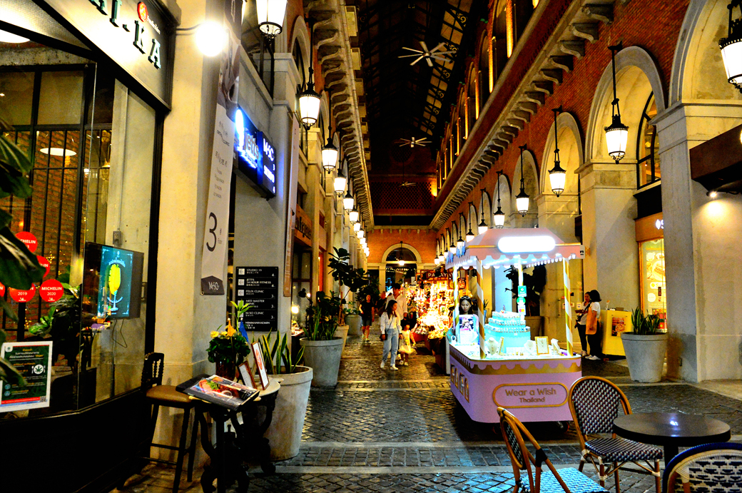 각종 조명으로 환히 밝혀진 쇼핑몰 원님만의 내부가 화려하고 아름답기 그지없다.