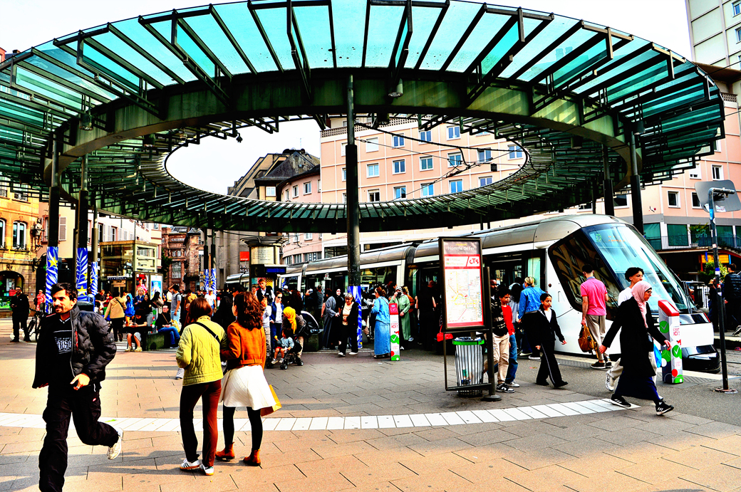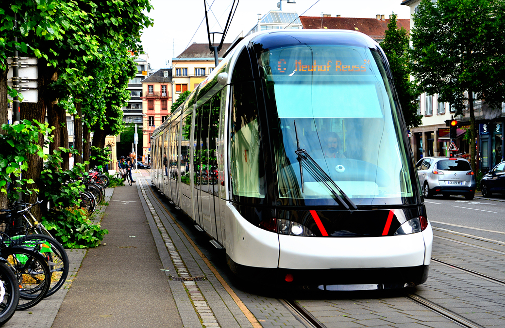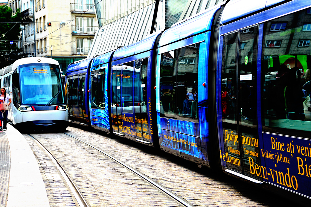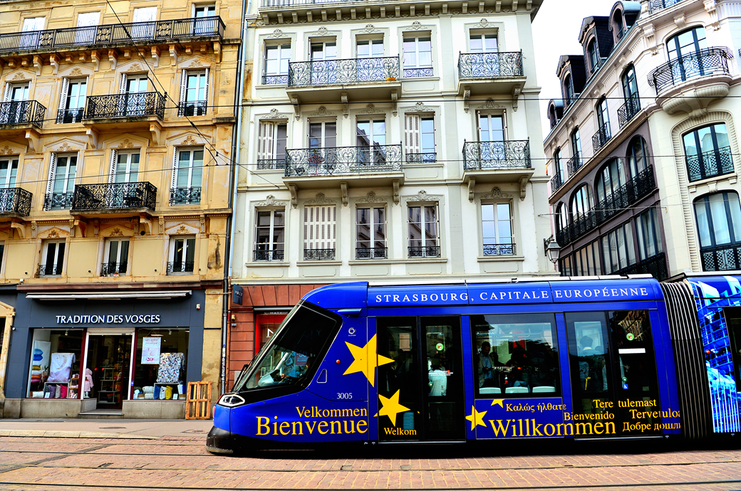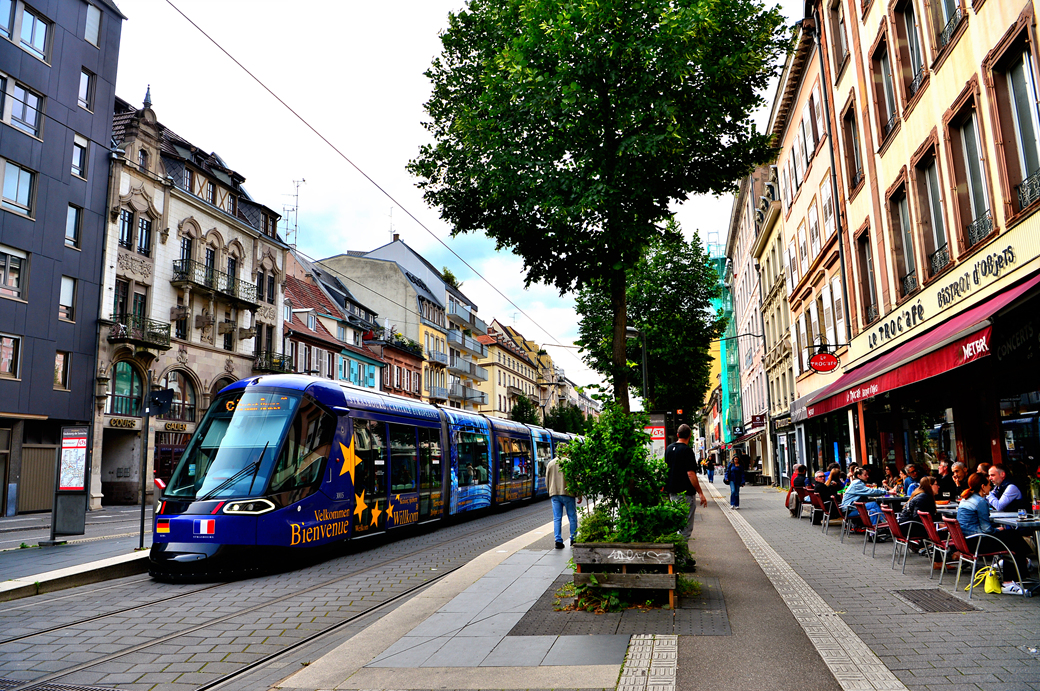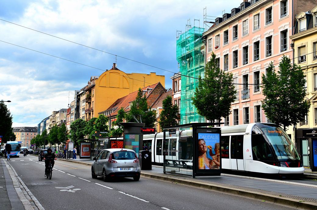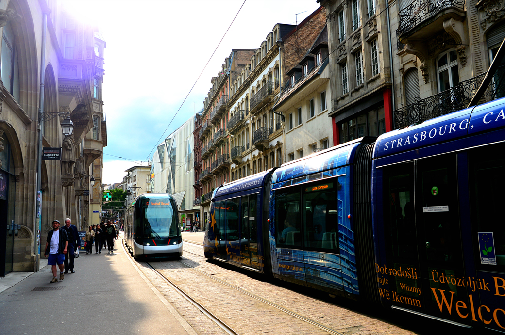 클레베르 광장을 지나서 만나게 된 대로에서는 많은 트램이 오간다.