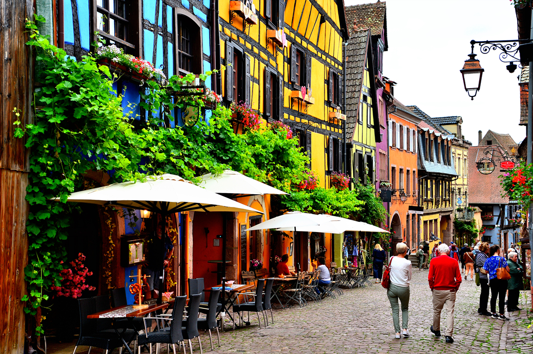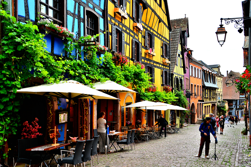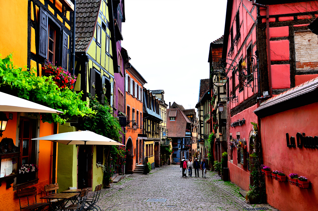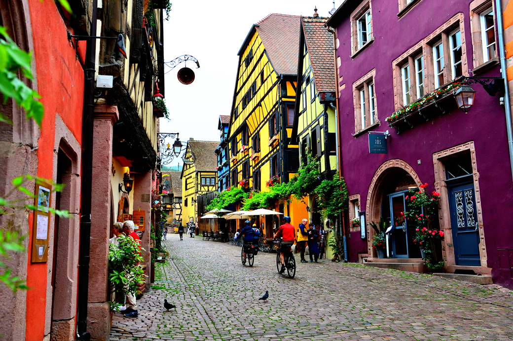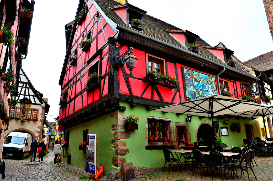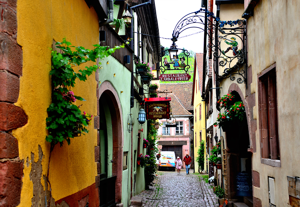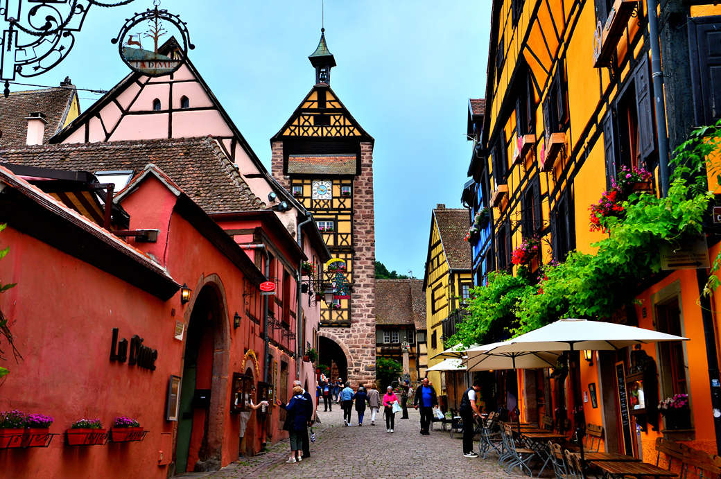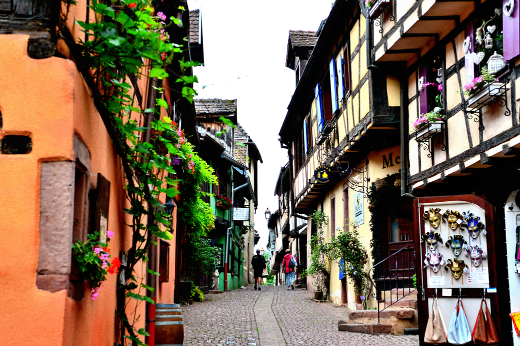 '아름다운 도시, 알자스의 진주'라는 애칭을 갖고 있다는 리퀘위르 Riquewire의 거리 풍경이다.