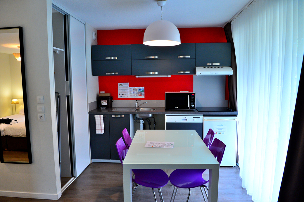 침실, 거실, 주방이 별도의 공간으로 구획되어 있고, 야외 탁자까지 비치되어 있는 레지던트 형식의 호텔이다.