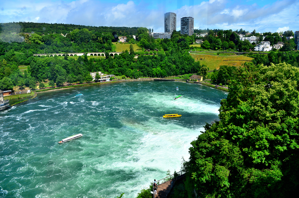 스위스 북동부 샤프하우젠 주의 노이하우젠 근처의 이 폭포는 유럽 최대 규모의 폭포로, 스위스와 독일 국경과도 가까워서 관광객이 많이 찾는 폭포다. 폭은 150m, 낙차는 약 23m라고 하고~