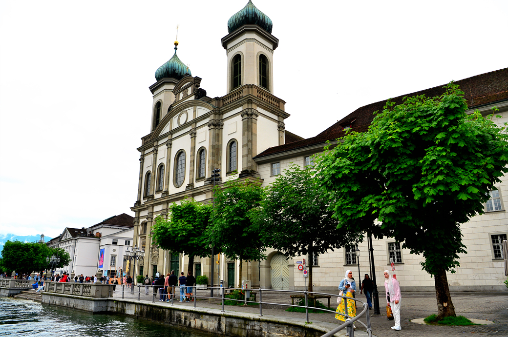 건물 양쪽 탑 위 양파 모양의 돔이 인상적인 이 교회는 1666~1677년 사이에 지어진 스위스 최초의 대규모 바로크 양식 성당이라고 한다. 처음에는 인근 학교의 부속 기관으로 건설되었으며 지금도 루체른 음악학교의 교회음악과에서 주최하는 음악회가 자주 열리는 곳이라고 한다.