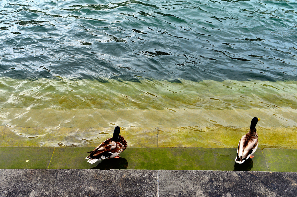 교회 앞 강으로 이어지는 계단에서는 오리들이 평화롭게 노닐고 있다.