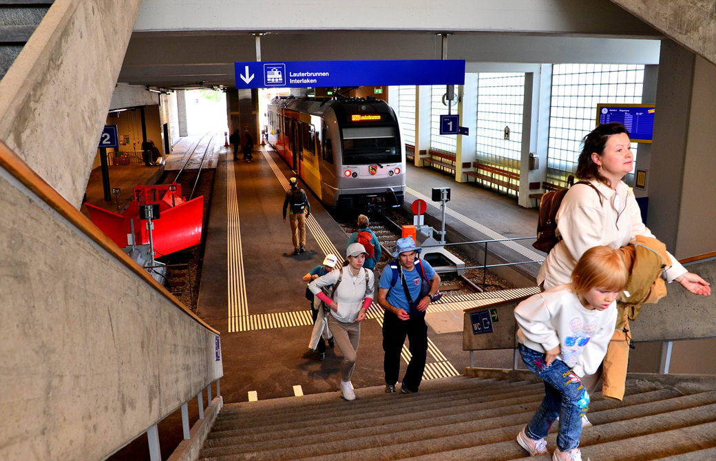 이제 우리는 이곳 라우터브루넨에서 케이블카를 타고 그러취알프 역에 내린 후, 산악열차로 갈아타고 자동차가 다니지 않는 청정 산악마을 뮈렌으로 향한다.