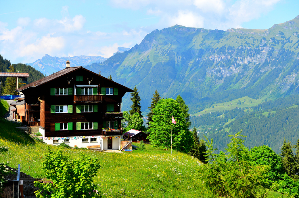 뮈렌은 1,645m에 위치한 작은 마을로 스위스에서 가장 아름답다고 일컬어지는 마을이다. 베르네제 오버란트의 3대 봉우리 아이거, 묀히, 융프라우를 눈높이에서 볼 수 있을 정도로 높은 지대에 위치했으며, 라우터브루넨 계곡을 마주한 풍경 또한 무척 아름다운 곳이다.