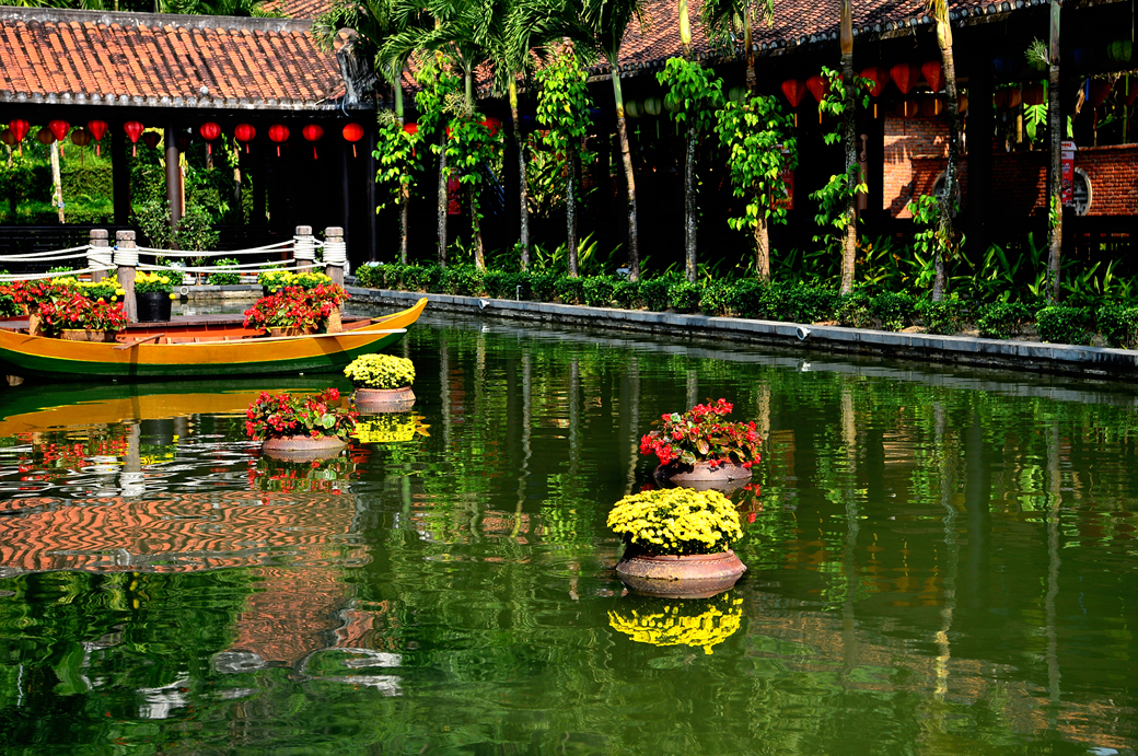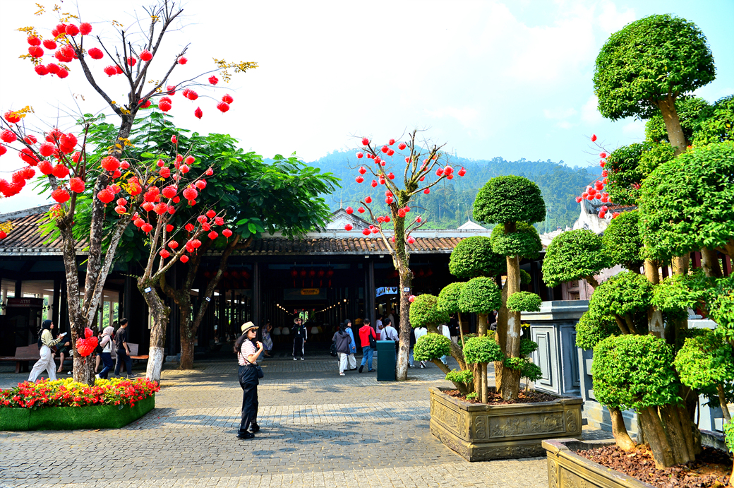 나뭇가지에 빨간 홍등을 매달아 놓은 모습이 베트남 답다는 느낌을 안겨 준다.