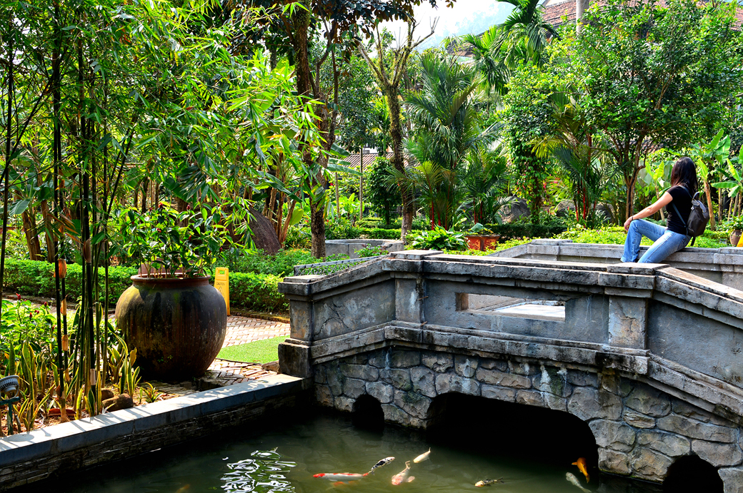 작은 다리 아래에도 많은 황금잉어들이 노닐고 있다.