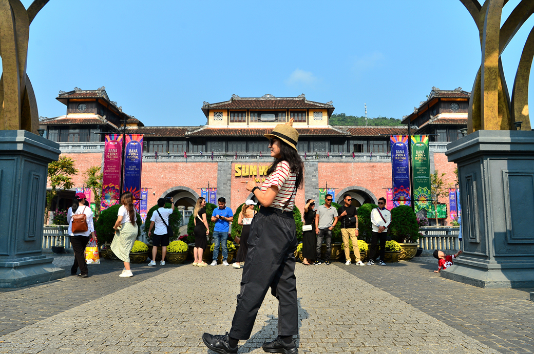 바나 힐 장식판 앞에서 기념사진을 남긴다.