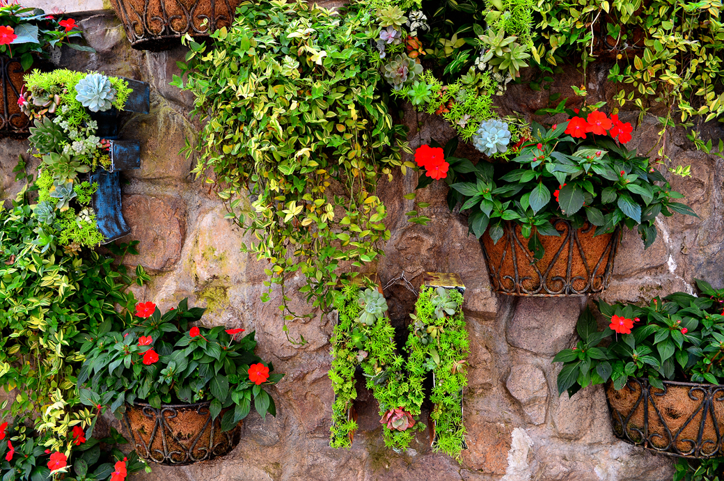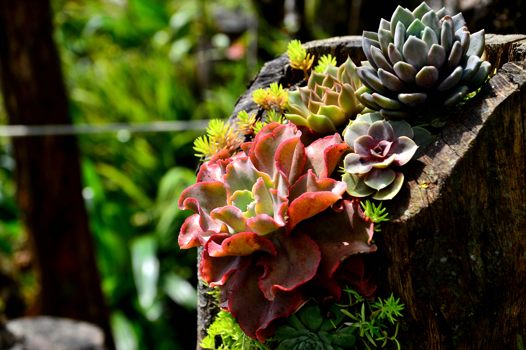 계단 옆의 다육이와 꽃들을 아름답게 가꾸어 놓았다.
