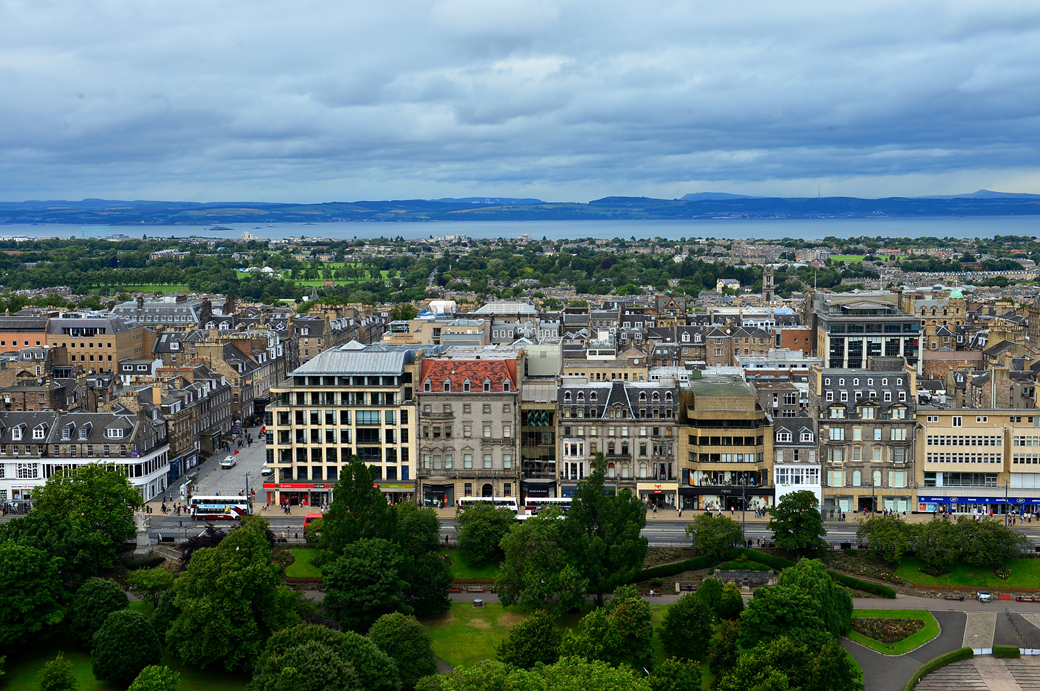 넬슨 제독 기념비가 우뚝 세워져 있는 칼튼 힐 Calton Hill도 보인다.