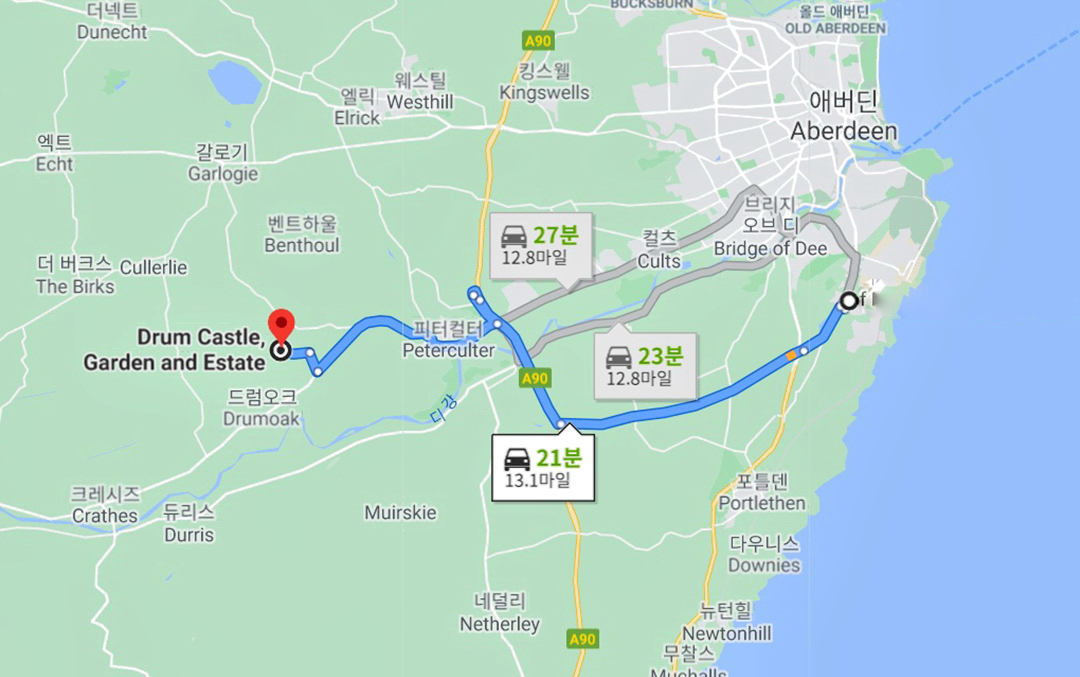 드럼 캐슬 Drum Castle은 아버딘 시내에서 약 30분 거리에 있다.