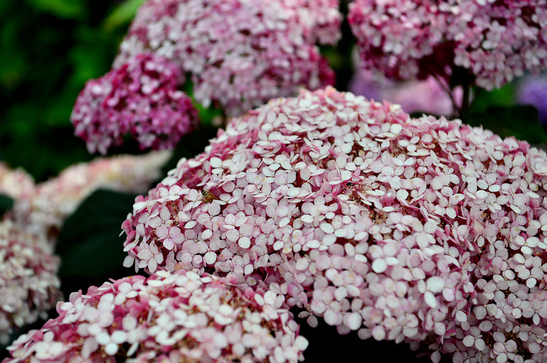 모양과 색이 서로 다른 수국들이 발길을 멈추게 한다.