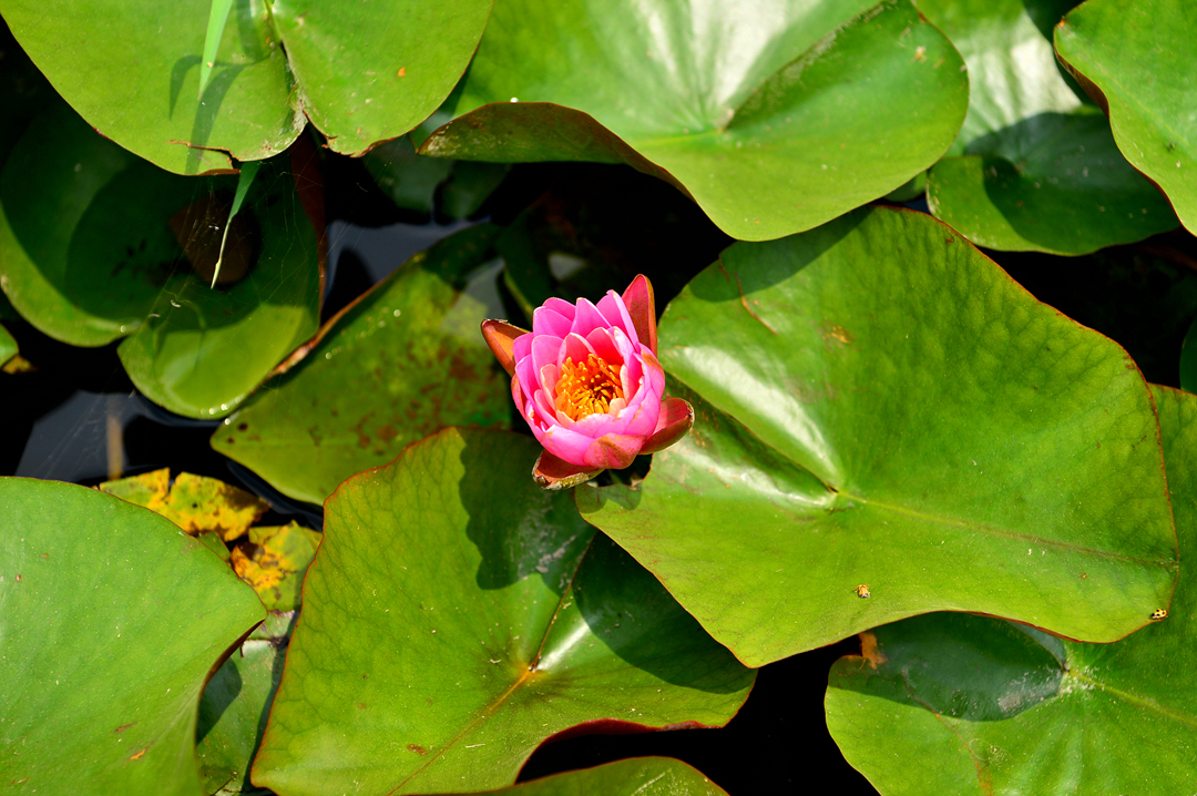 습지 안에서는 앙증맞고 작은 수련이 붉은빛을 토해내고 있다.
