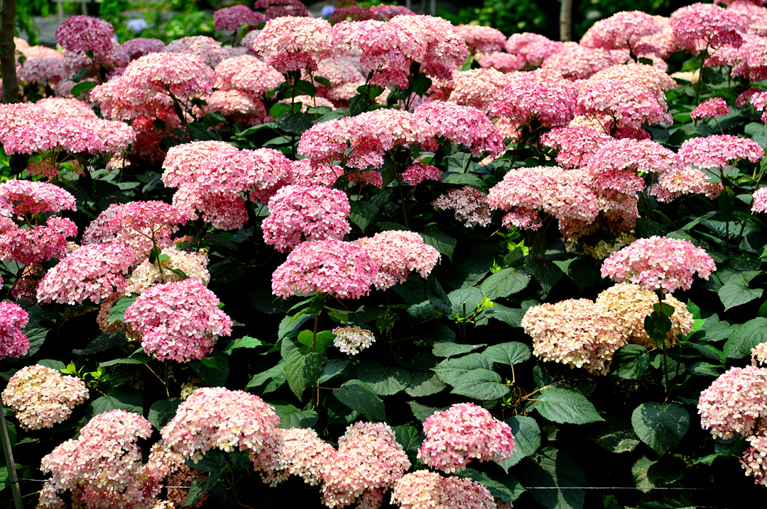 꽃 모양에 따라 가운데 작은 꽃들이 밀집되어 있고 주변에 큰 꽃들이 있는 Lacecaps계와 전체가