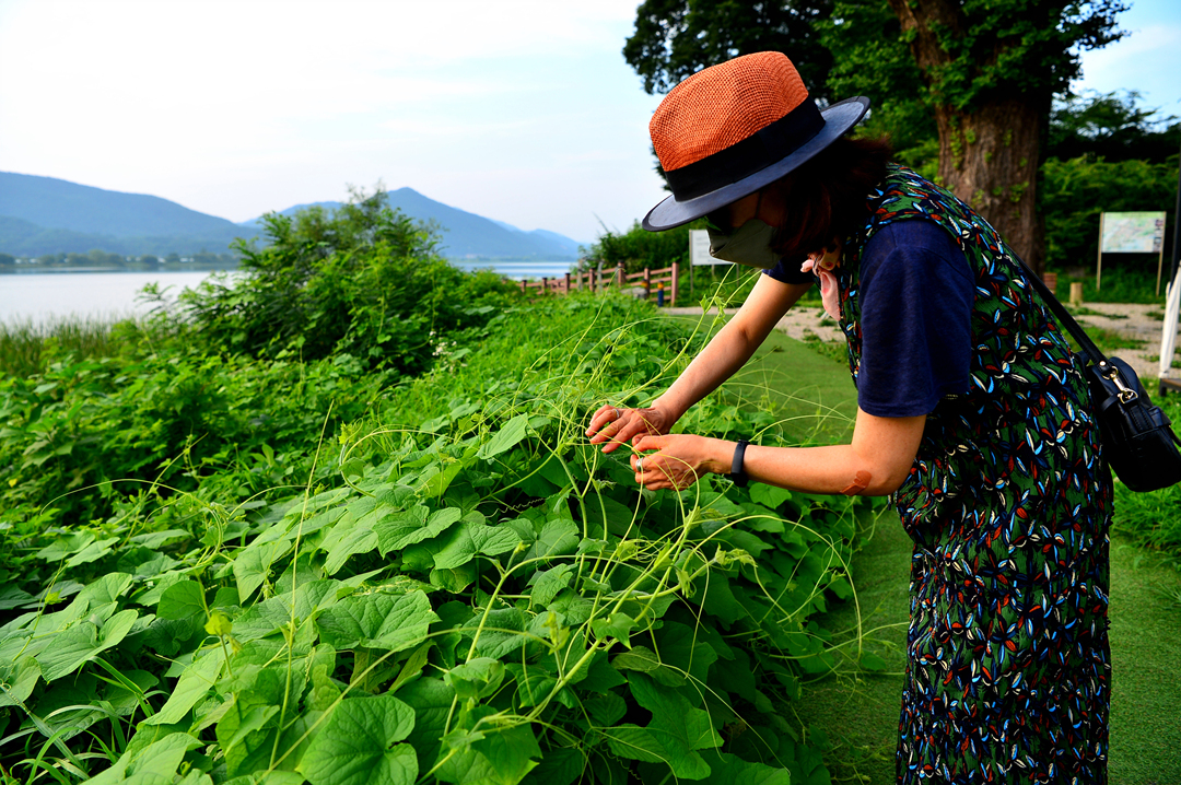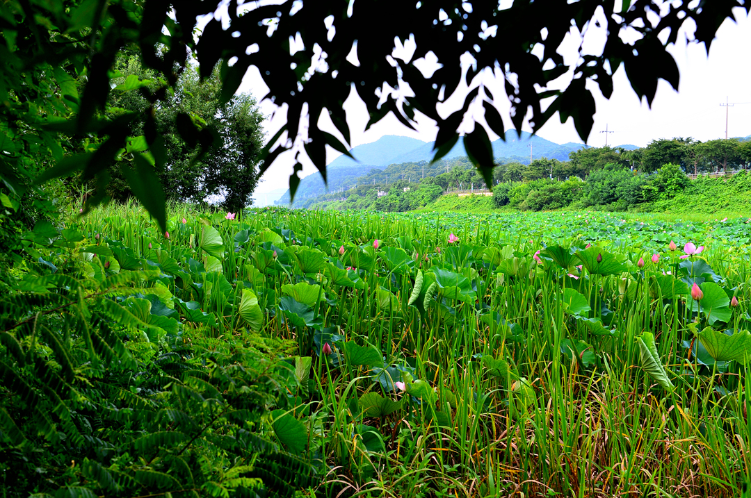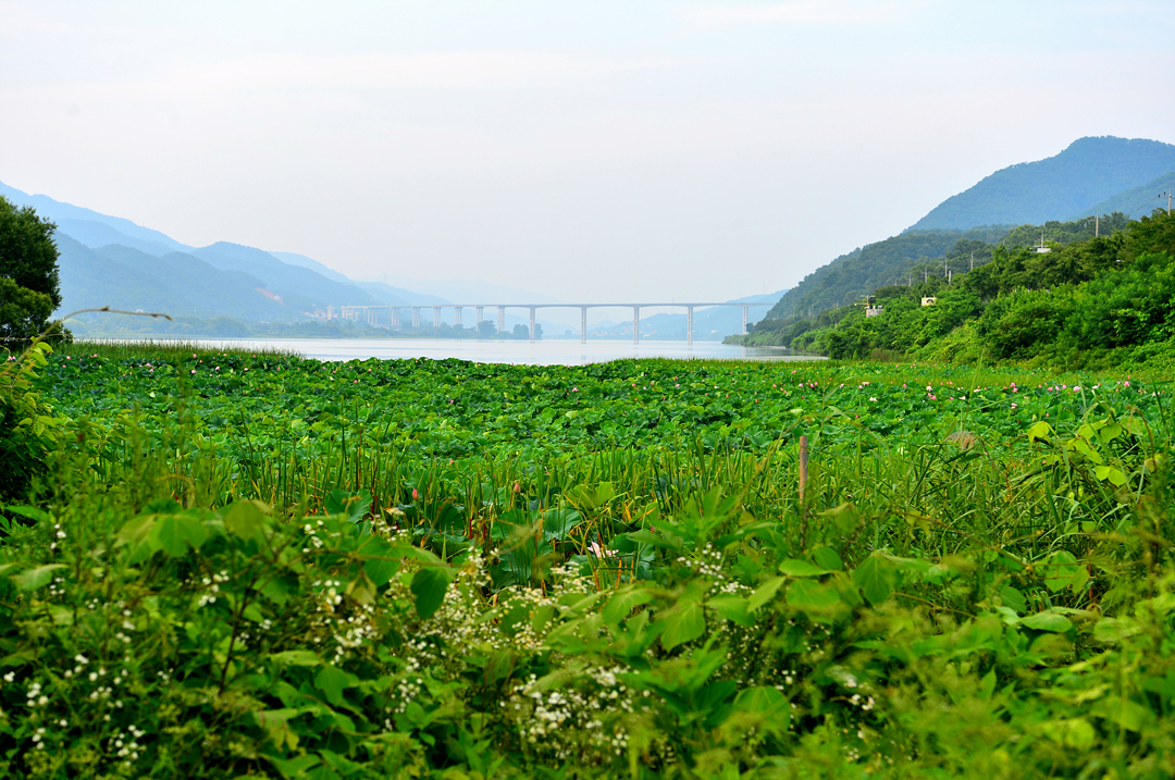 데크길 끝에서 만난 강변의 연밭이다.