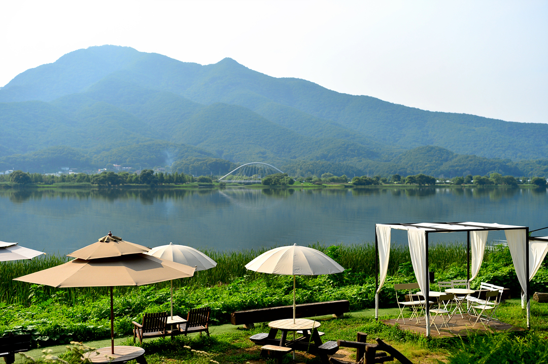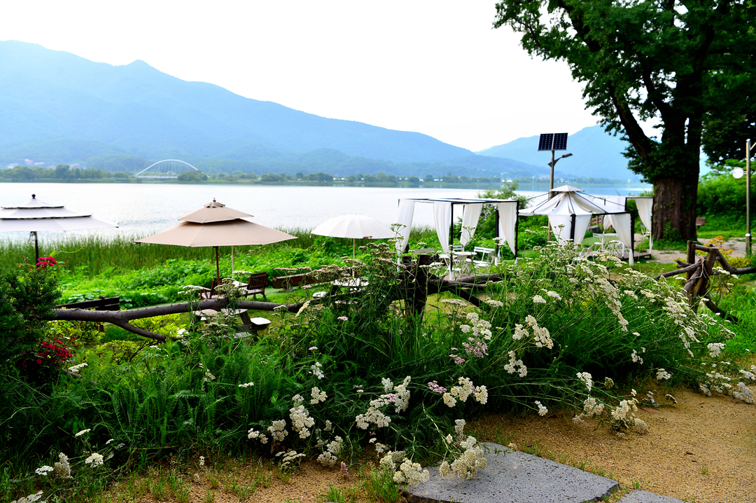 북한강이 훤히 내려다보이는 강변의 아름다운 수수 카페에서~
