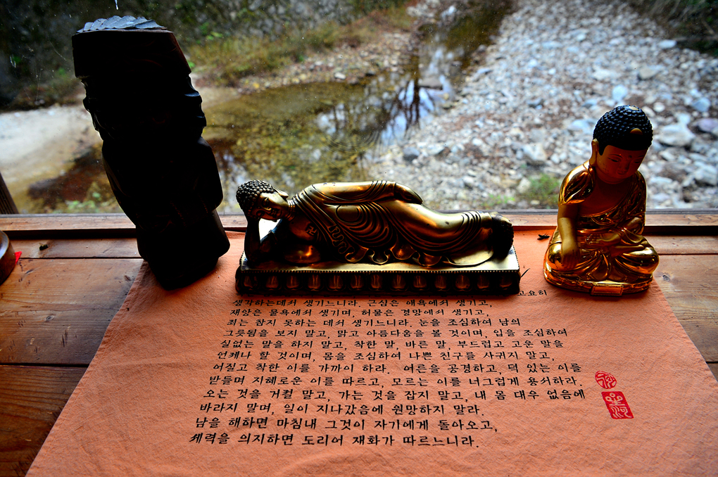 그런데 사찰의 근간이랄수 있는 대웅전이 큰 법당이라는 현판을 단 초라한 모습의 가설건축물로 방문객을 맞이하고 있다.