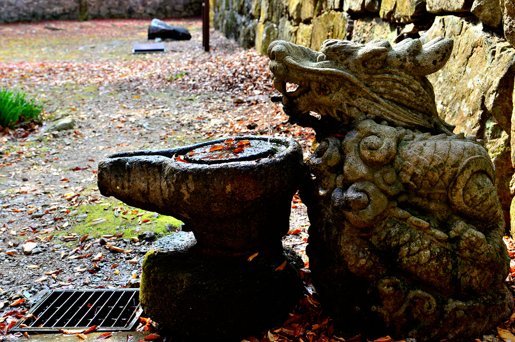 작은 물줄기를 내뿜고 있는 용머리 조각이 고풍스럽고 멋지다.