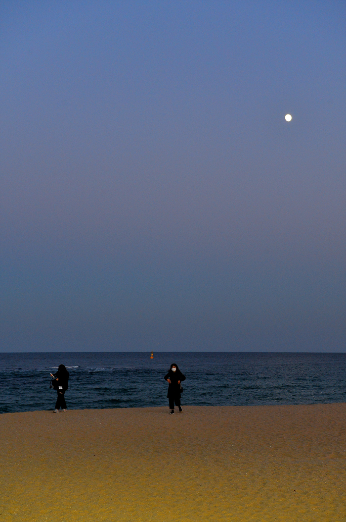 어둑어둑해지는 해변에서 잠시 휴식을 취한 후, 머나먼 귀갓길에 오른다.