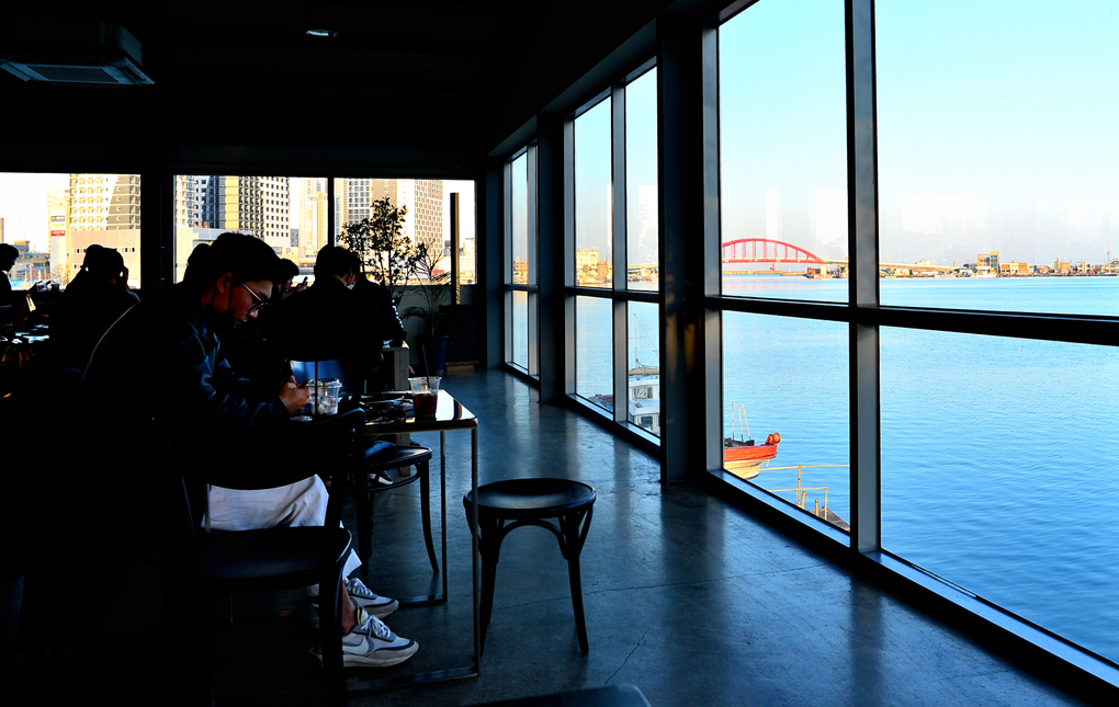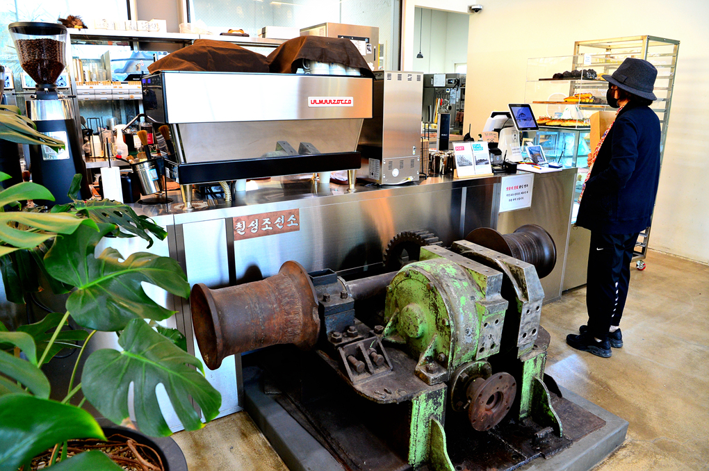 카페로 탈바꿈한 청초호의 옛 조선소에서 커피를 마시고~