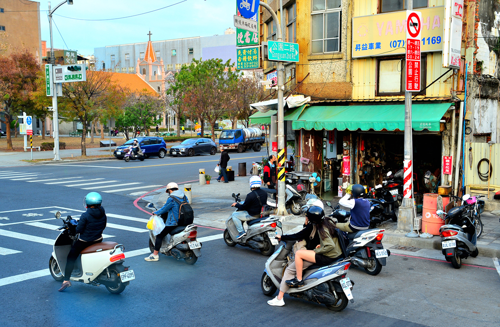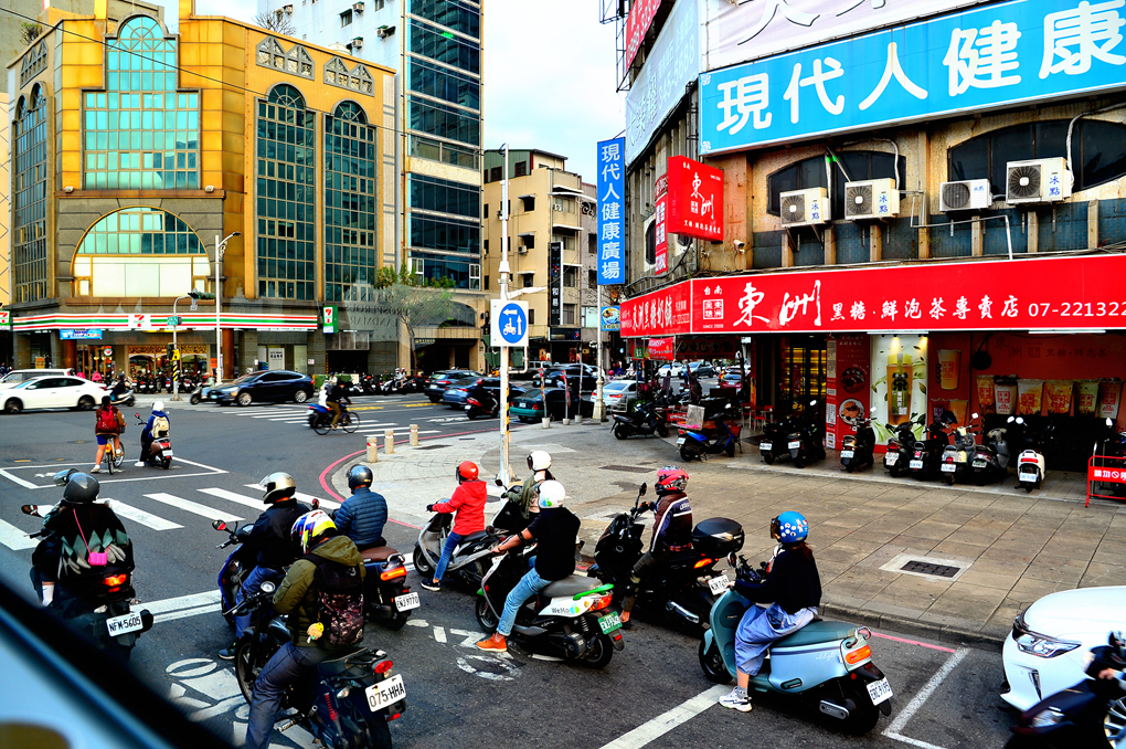 가오슝의 가장 대중적인 탈거리라는 오토바이가 가지런히 항구를 누빈다.