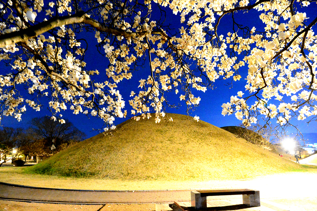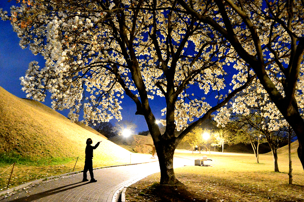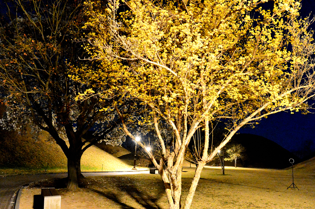 조명이 밝혀진 인왕동 고분군의 아름다운 모습들이다.