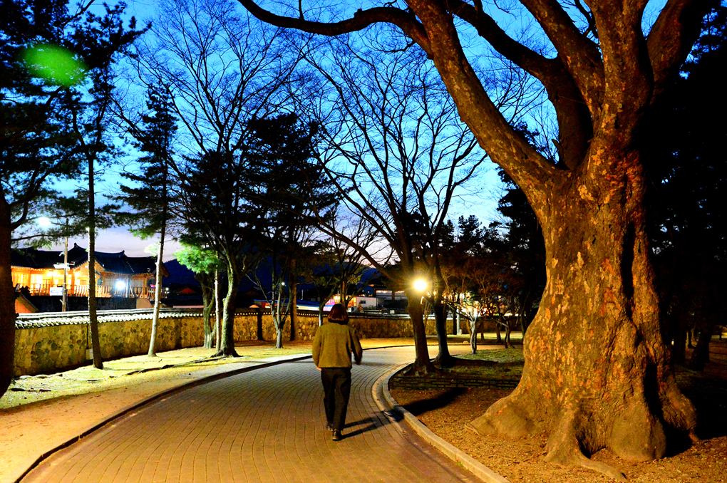 조명이 밝혀진 대릉원 안의 산책로를 따라간다.