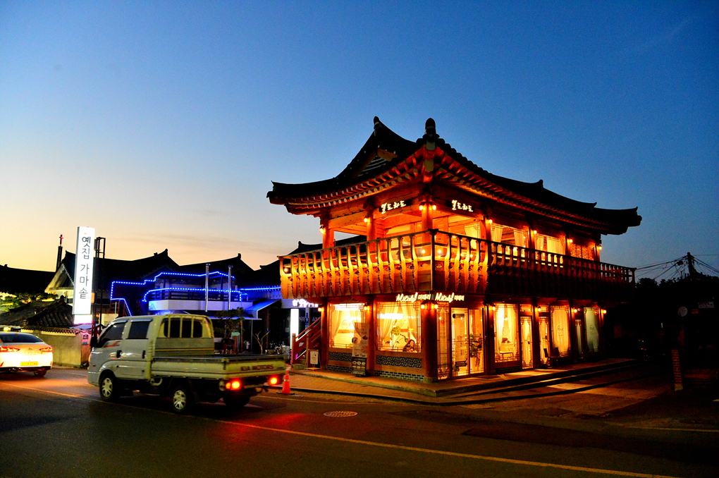 도로변의 음식점을 거대하고 아름답게 지어 놓았다.