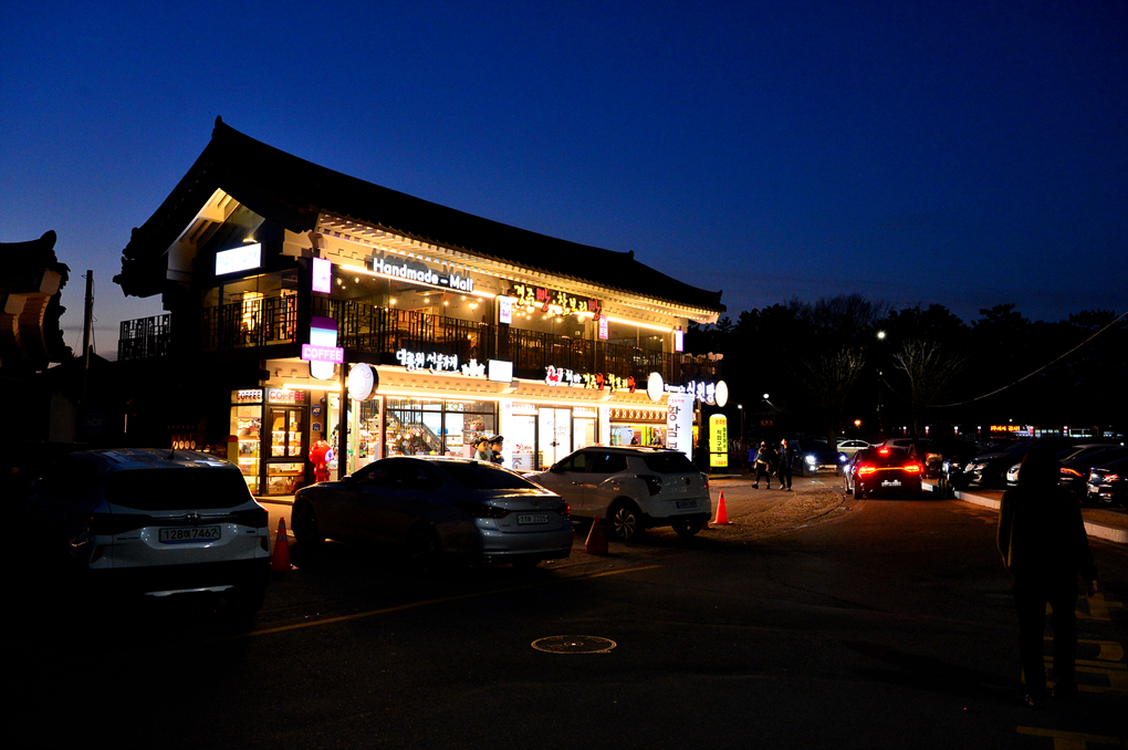 담장 너머로는 화려한 불빛을 받고 있는 신라대종도 보인다.