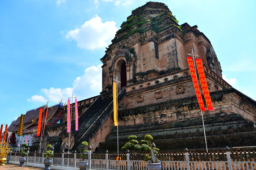 프라 체디루앙 Phra Chedi Luang으로 불리는 왓 체디루앙의 이 거대한 탑은 처음에는 높이가 90m에 이르렀으나