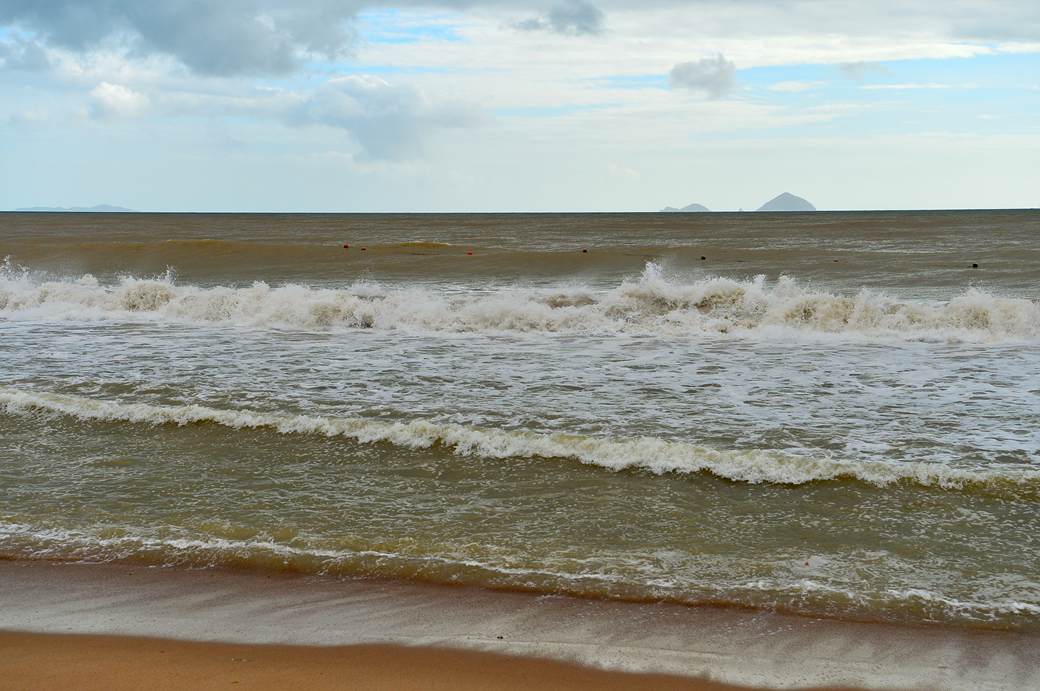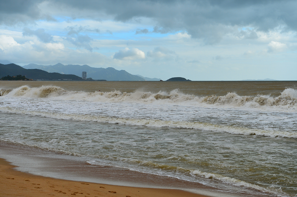 황톳빛의 거친 파도가 해변으로 밀려오고~