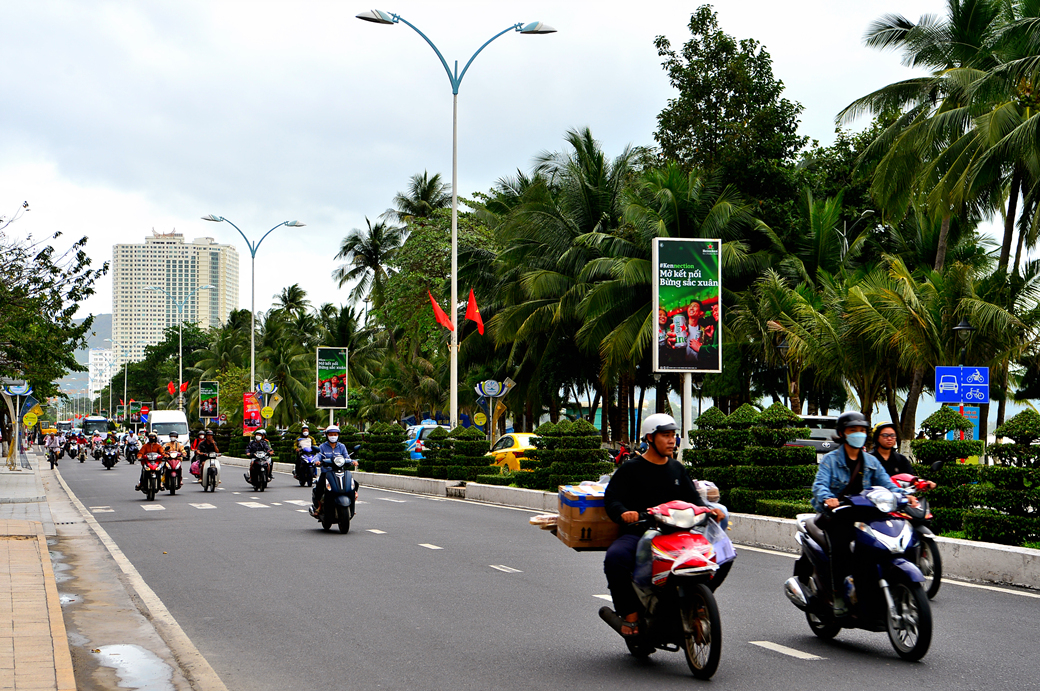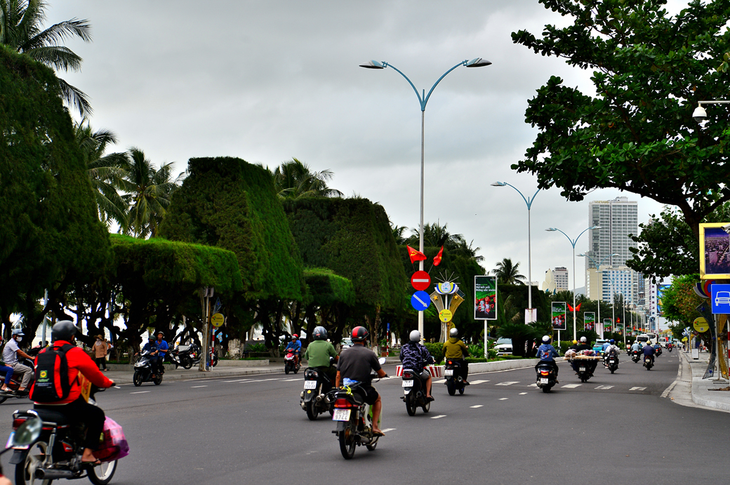 해안을 따라 나있는 도로에는 출근길의 오토바이 행렬이 끊임없이 이어진다.