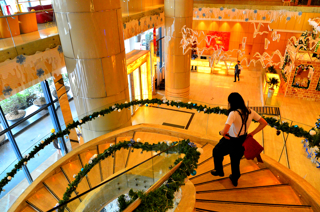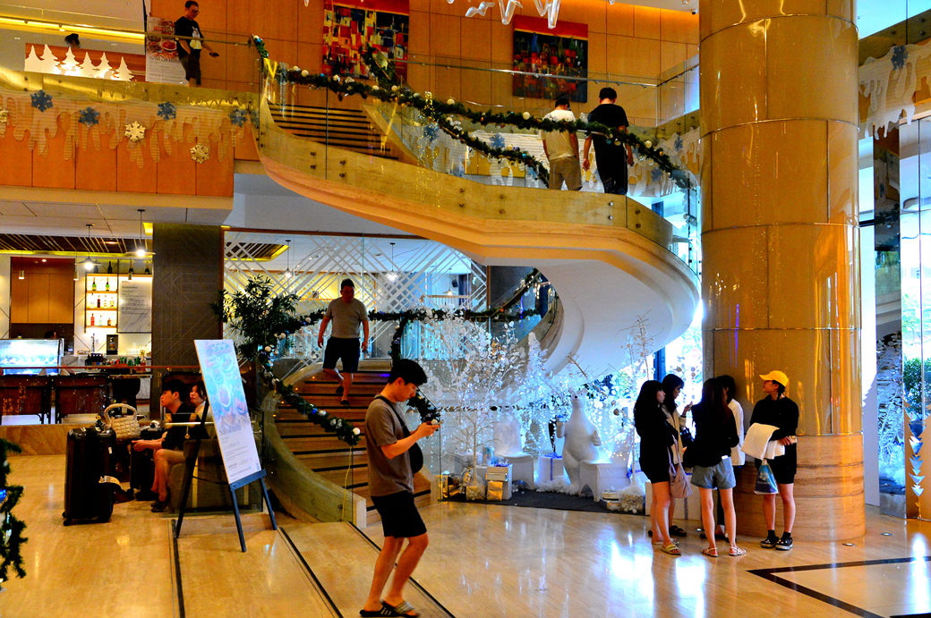 성탄절을 앞둔 시기라서 대형 트리가 로비를 장식하고 있다.