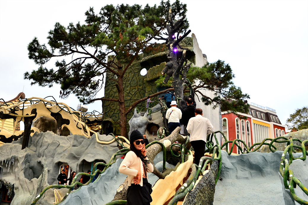 커다란 나무 모형의 좁은 구간도 지나고~