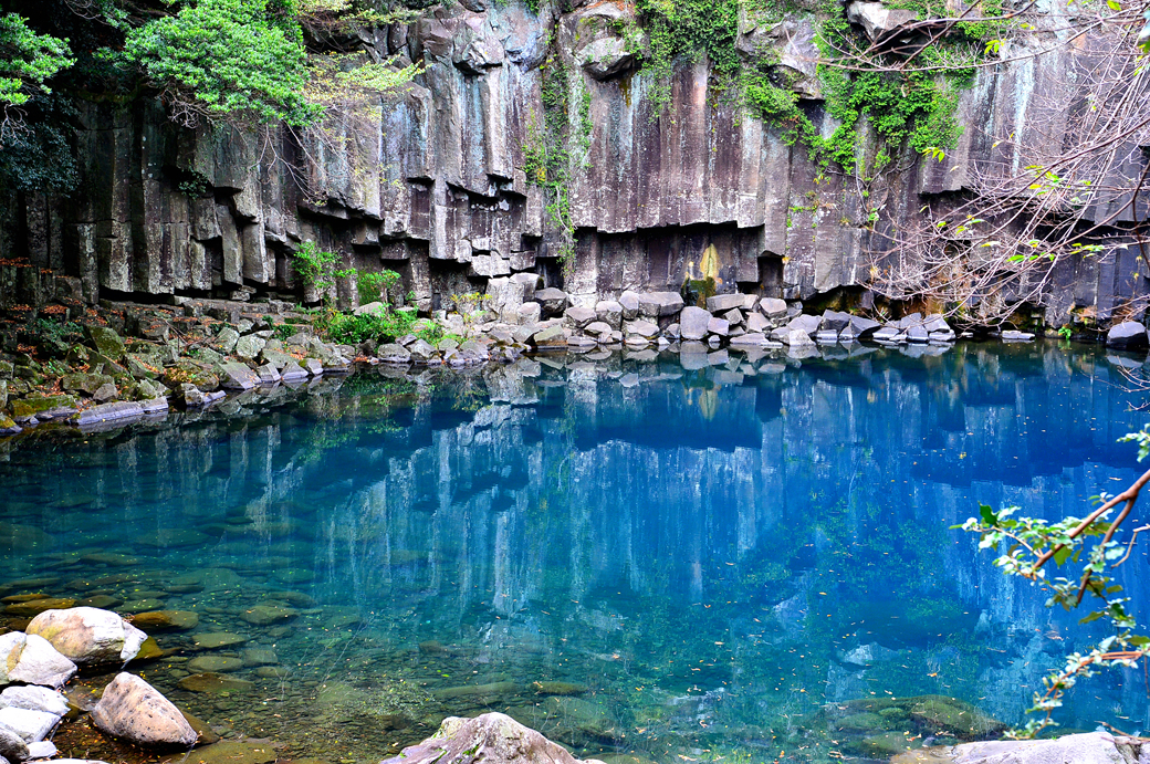 입구를 들어서자마자 보이는 주상 절리대와 어우러진 푸른 물빛이 아름답게 다가온다.