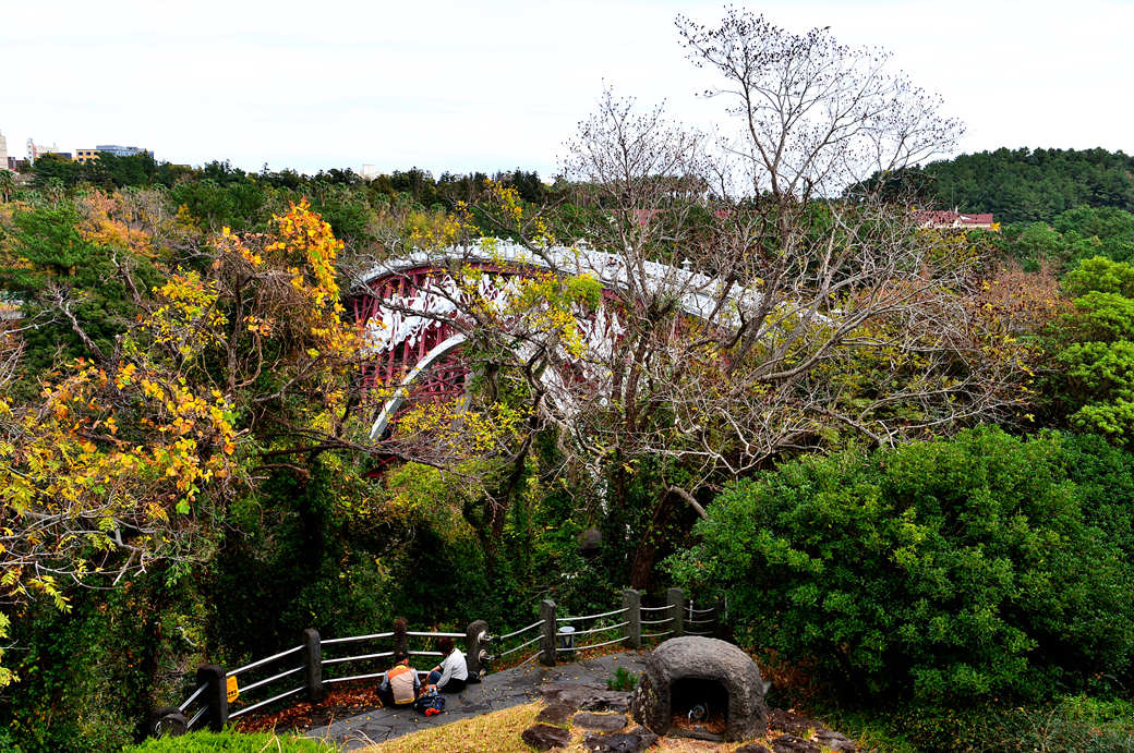 이 다리는 천제연 2단과 3단 폭포 중간쯤에 위치해 폭포와 중문 관광단지를 이어주는 아치형 철제다리라고 한다.