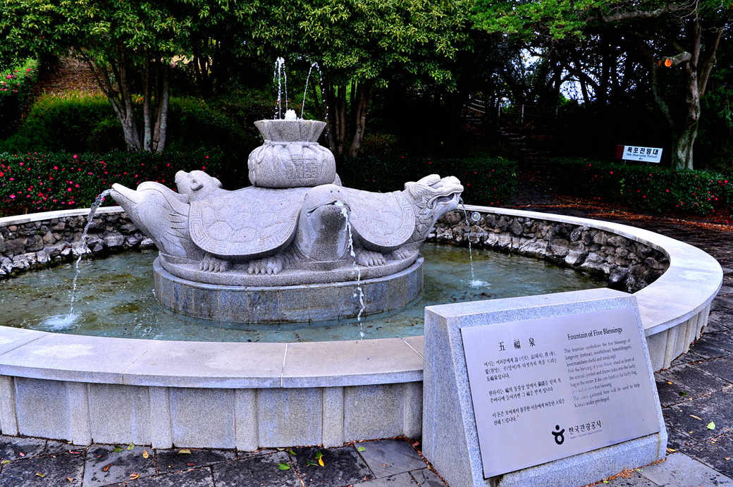다리를 건너서 만난 오복천이라는 작은 분수 모습이다.