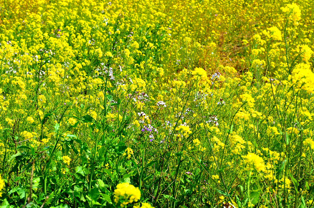 도로변에서 본 유채꽃밭이다.